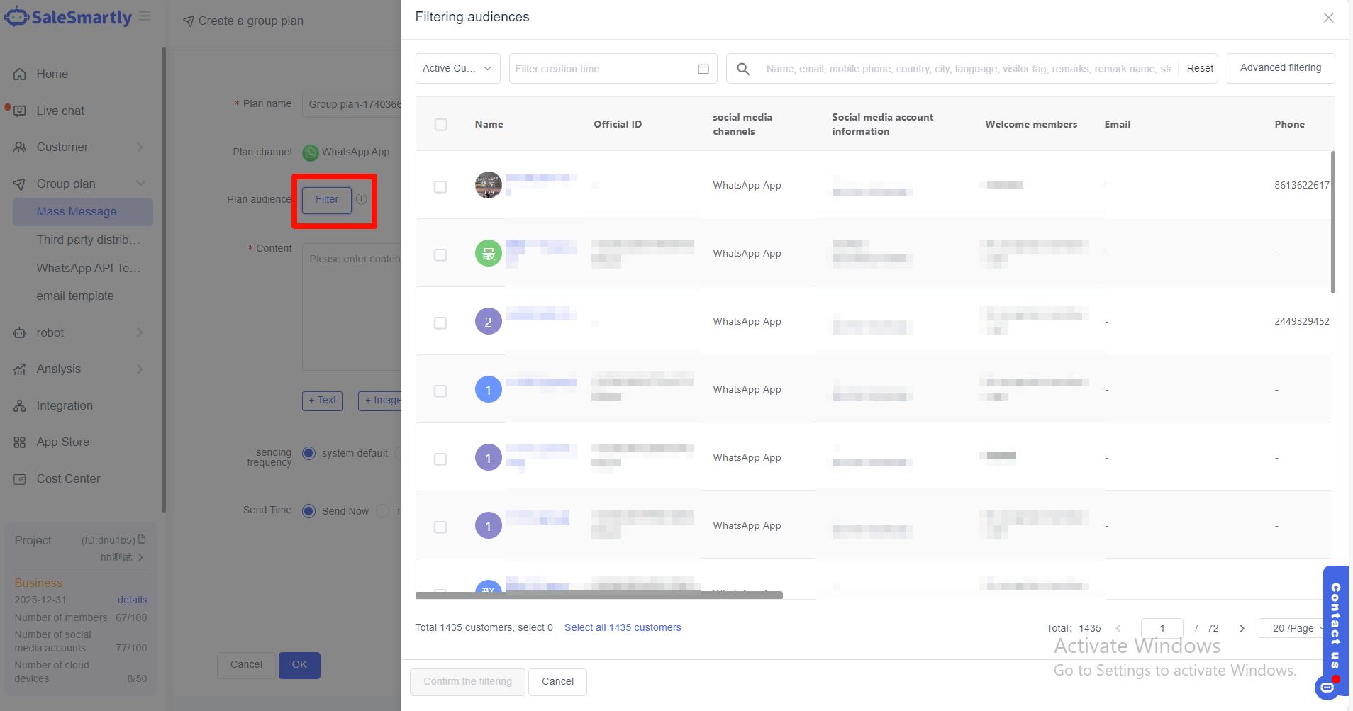 Dù là phiên bản cá nhân hay doanh nghiệp của WhatsApp, bạn chỉ có thể chọn tối đa 256 người dùng khi gửi tin nhắn nhóm. Ngay cả phiên bản doanh nghiệp cũng chỉ có thể đăng nhập bằng một điện thoại và bốn phiên bản web/máy tính, điều này là không đủ đối với các doanh nghiệp quy mô lớn. Do đó, bạn cần đăng nhập vào SaleSmartly để hỗ trợ doanh nghiệp gửi tin nhắn nhóm WhatsApp.