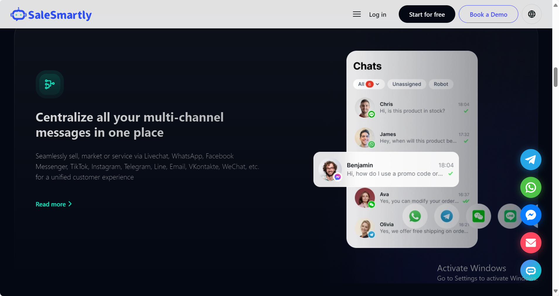 Salesmartly cung cấp giải pháp tập trung, cho phép quản lý đồng thời nhiều tài khoản mạng xã hội. Hiện tại có thể tích hợp các nền tảng chính như Facebook, Instagram, Twitter, và sắp ra mắt TikTok. Nền tảng quản lý all-in-one của Salesmartly giúp chuyển đổi và vận hành nhiều tài khoản trên một giao diện duy nhất mà không cần đăng nhập/đăng xuất liên tục. Điều này giảm cảnh báo bảo mật có thể phát sinh từ việc chuyển đổi tài khoản thường xuyên, duy trì ổn định tài khoản.