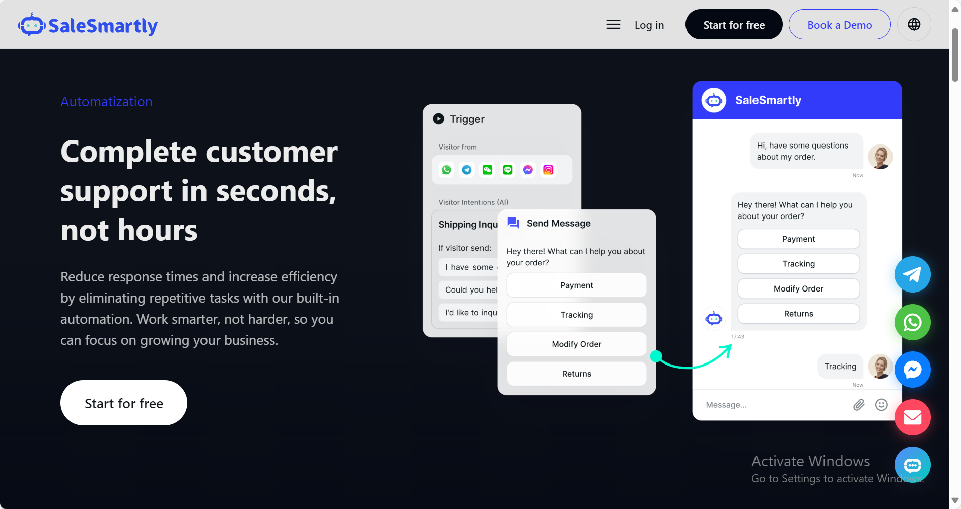 Với Salesmartly, bạn có thể thiết lập chuỗi tác vụ tự động như đăng bài theo lịch, trả lời tự động... để nâng cao hiệu suất vận hành. Công cụ tự động còn giúp duy trì hoạt động tài khoản mà không cần chuyển đổi liên tục để thao tác thủ công.