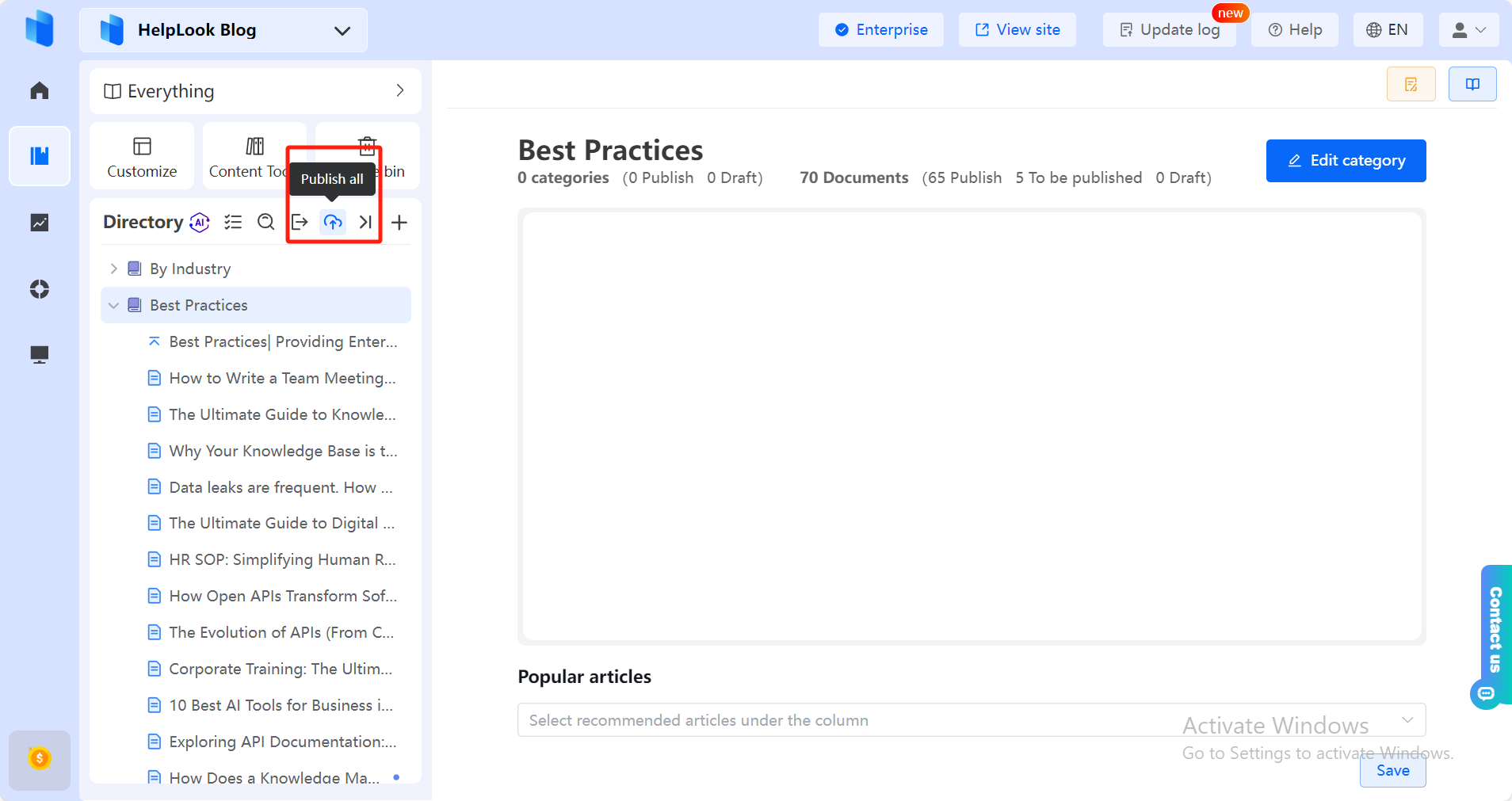 Trong giao diện quản trị của HelpLook, vào mục Nội dung để soạn thảo các câu hỏi thường gặp (FAQ) cùng phần trả lời.
