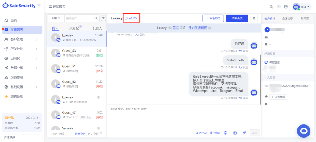 1. SaleSmartly tích hợp dịch vụ khách hàng WeChat
