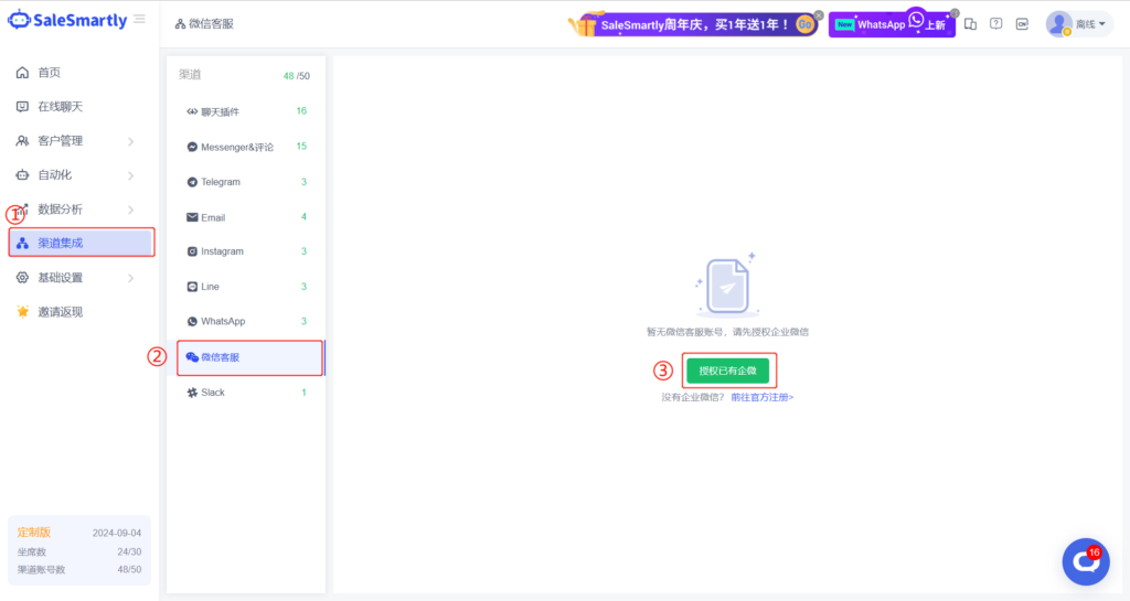 3. Cách tích hợp dịch vụ chăm sóc khách hàng WeChat vào SaleSmartly