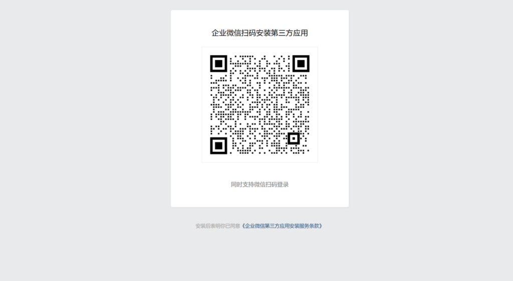 Sau khi nhấp vào nút ủy quyền, trang quét mã QR WeChat Doanh nghiệp sẽ mở ra. Vui lòng mở ứng dụng WeChat Doanh nghiệp để quét mã QR để ủy quyền (vui lòng đảm bảo sử dụng danh tính Quản trị viên Cấp cao của WeChat Doanh nghiệp để quét mã QR).