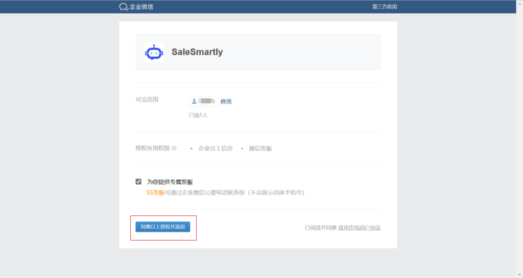 Sau khi quét mã QR thành công, bạn sẽ được chuyển hướng đến trang ủy quyền WeChat. Bạn cần nhấp vào nút "Đồng ý Ủy quyền" và chờ 3 giây trước khi được chuyển hướng trở lại trang hệ thống SaleSmartly. Lúc này, bạn đã tích hợp thành công dịch vụ khách hàng WeChat vào SaleSmartly.
