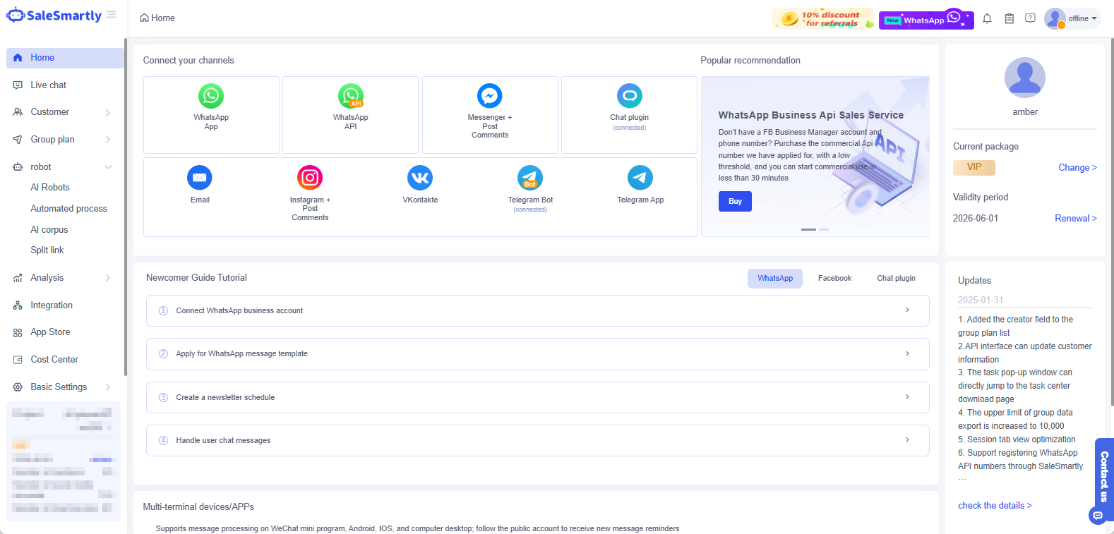 Khi bạn đã tải xuống ứng dụng mạng xã hội quốc tế, việc quản lý nhiều tài khoản trên các nền tảng khác nhau có thể là thách thức. SaleSmartly đơn giản hóa quá trình này bằng cách tích hợp tài khoản từ các nền tảng.