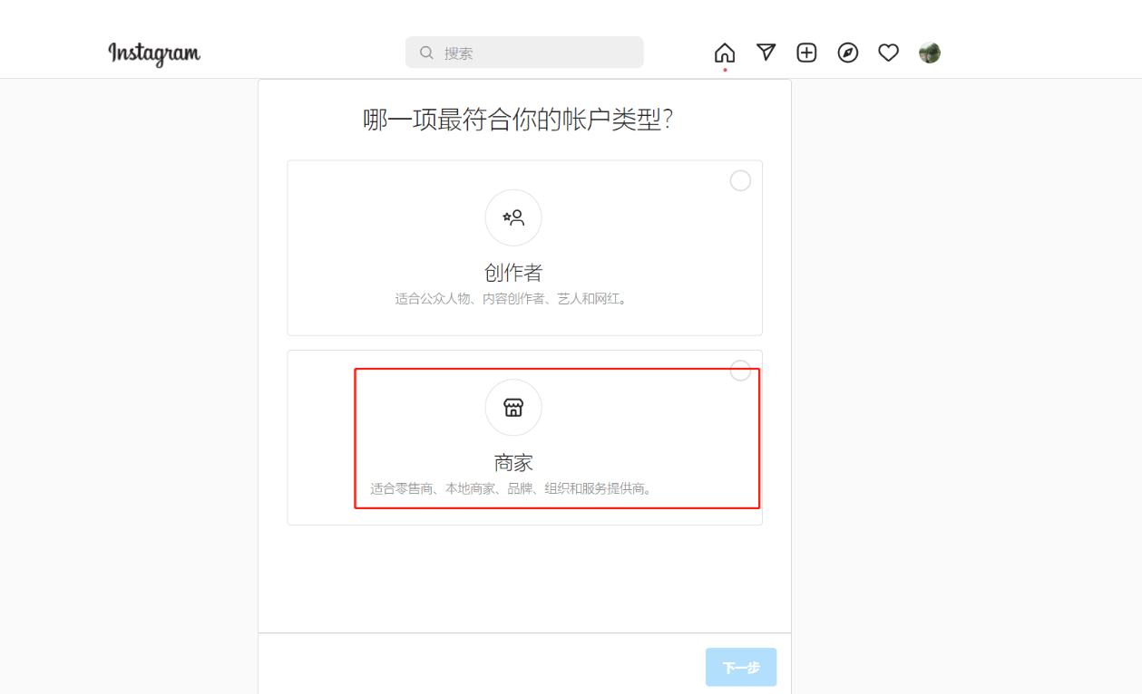 - Chọn loại tài khoản và chọn tùy chọn thương nhân.