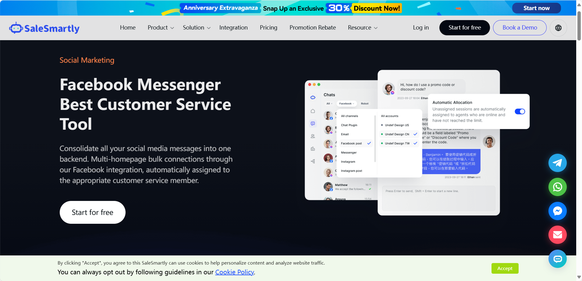Sử dụng SaleSmartly để trình bày một loạt kịch bản hội thoại như tin nhắn chào mừng và tin nhắn giới thiệu để tự động phản hồi các yêu cầu và phản hồi từ khách hàng tiềm năng.
