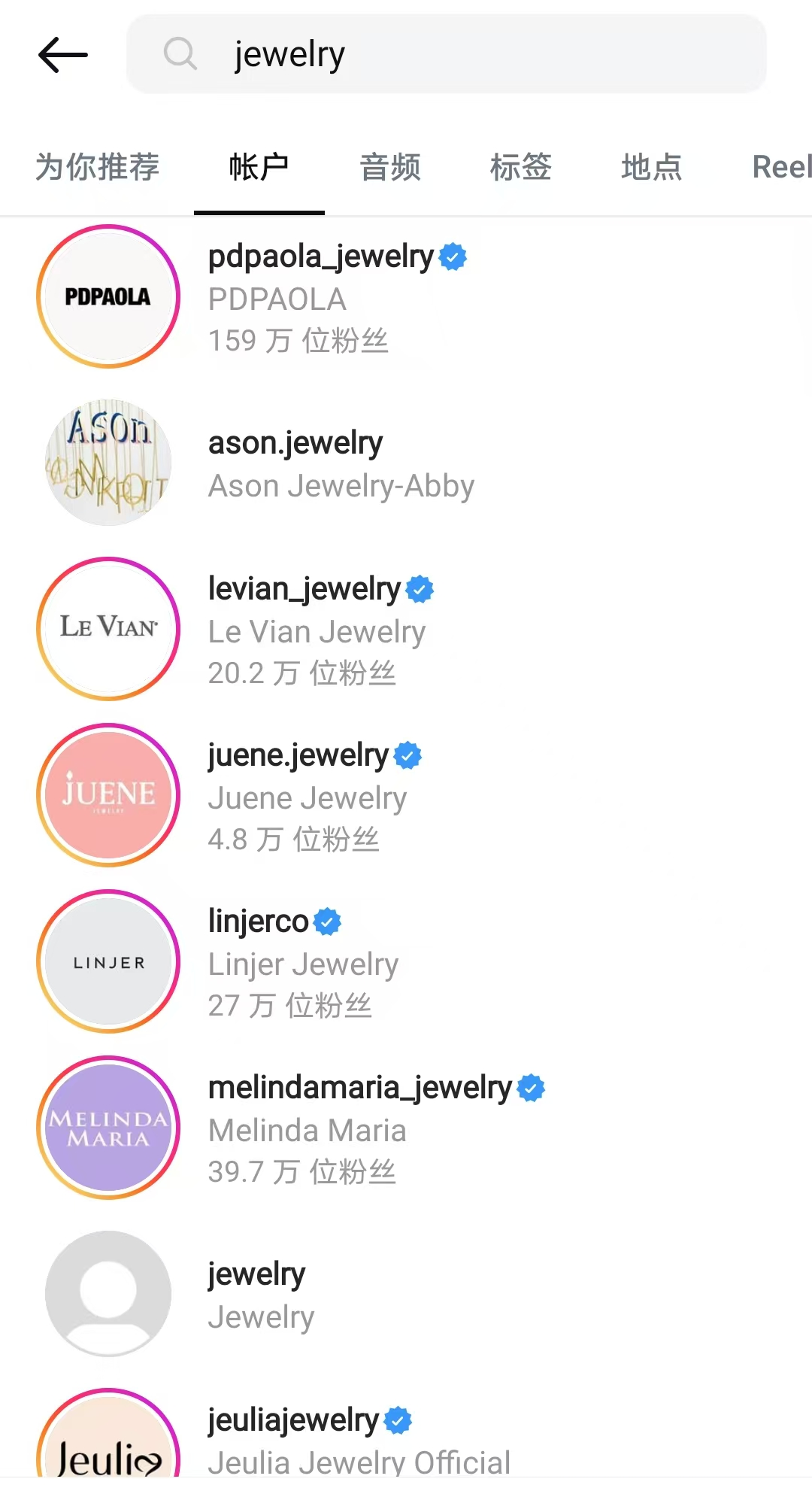 Nếu doanh nghiệp chưa nổi tiếng, nên thêm từ khóa sản phẩm vào tên người dùng. Công thức có thể là thương hiệu + từ khóa sản phẩm. Ví dụ, nếu bạn kinh doanh trang sức, tên Instagram có thể là tên thương hiệu + trang sức để khách dễ tìm. Khi tìm kiếm trang sức trên Instagram, có thể thấy nhiều tài khoản áp dụng cách đặt tên này để người dùng nhận biết sản phẩm ngay lập tức.