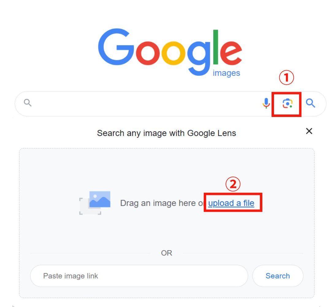 Nhấp camera bên phải ô tìm kiếm - Chọn tải ảnh lên.