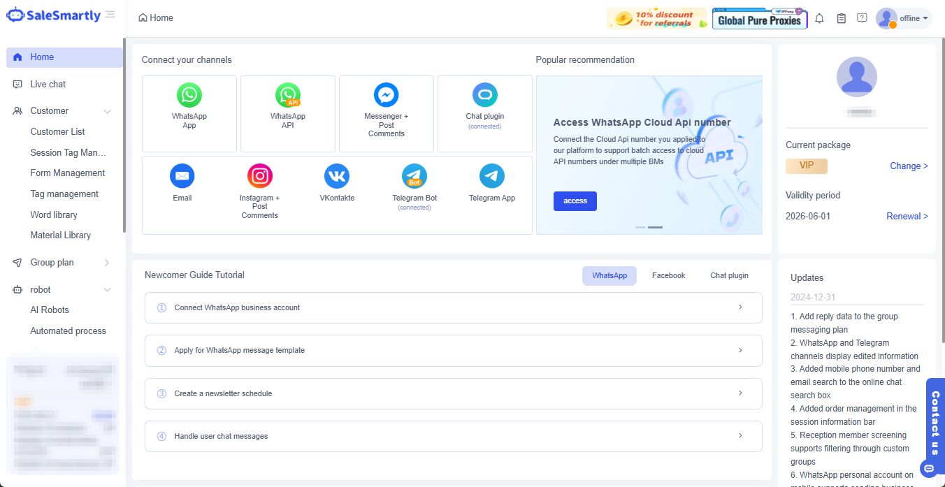 SaleSmartly là một nền tảng giao tiếp khách hàng đa kênh. Thông qua nền tảng tập trung này, các đội nhóm ở mọi quy mô có thể phản hồi tin nhắn từ mọi kênh, giúp giao tiếp giữa doanh nghiệp và khách hàng trở nên thuận tiện và thông minh hơn! Đồng thời, SaleSmartly còn cung cấp các chức năng như tự động hóa marketing, chăm sóc khách hàng thông minh, dịch thời gian thực, phân tích dữ liệu,… được thiết kế dành riêng cho bộ phận chăm sóc khách hàng, marketing và bán hàng.
