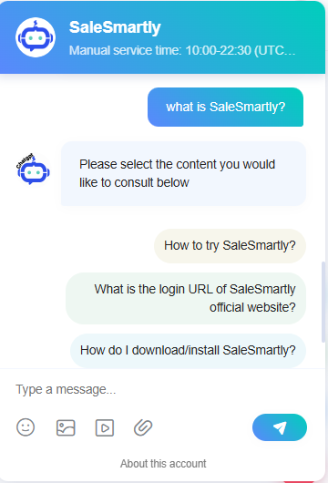 SaleSmartly là nền tảng giao tiếp khách hàng đa kênh giúp bạn tích hợp plugin trò chuyện vào trang web. Sau khi thêm plugin trò chuyện vào trang web riêng, nó có thể tự động trả lời tin nhắn của khách truy cập mà không cần chuyển hướng sang trang khác, tăng tỷ lệ trò chuyện. Ngoài ra, bạn có thể thêm các thành phần tạo khách hàng tiềm năng vào plugin trò chuyện, nơi khách truy cập có thể nhấp để được chuyển hướng đến các kênh tương ứng để trò chuyện, đạt được lợi ích trong việc tạo khách hàng tiềm năng, marketing và phân phối truy vấn.