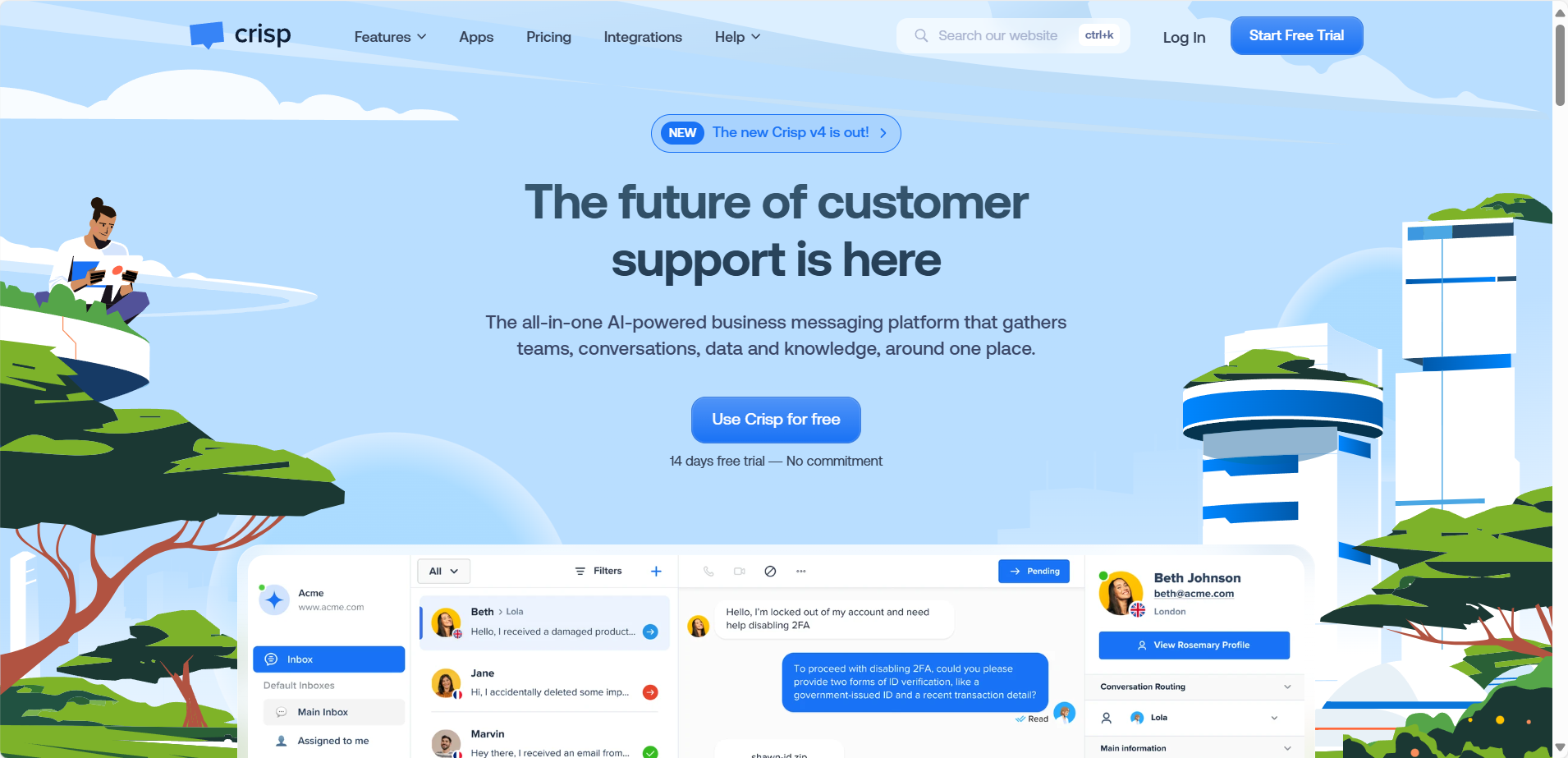 Crisp là công cụ CSKH trực tuyến dành cho startup, cung cấp hỗ trợ realtime và chatbot mạnh.