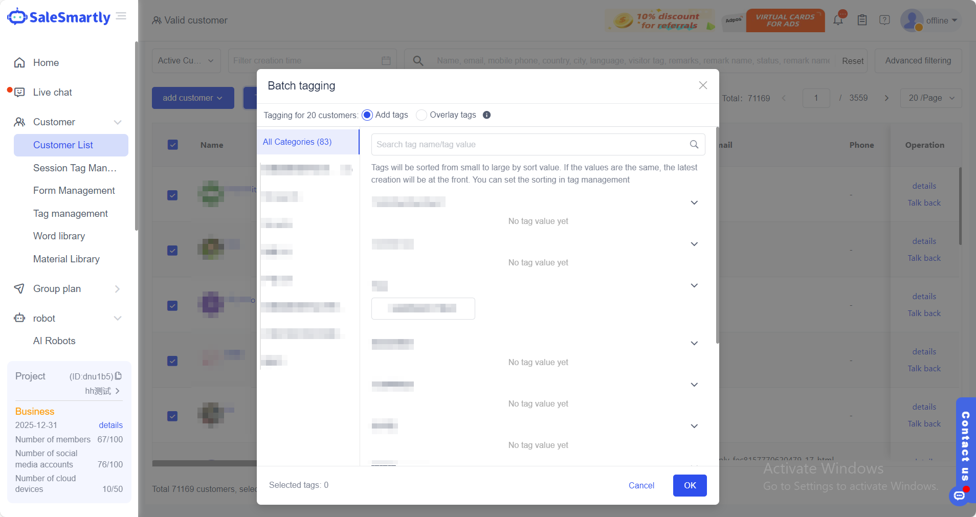 Nền tảng TikTok hiện không có chức năng gán thẻ cho khách hàng và gửi tin nhắn nhóm, nhưng nếu một công ty muốn hướng lưu lượng truy cập TikTok đến tên miền riêng một cách hiệu quả, họ thường cần gửi các tin nhắn được cá nhân hóa đến các nhóm người dùng khác nhau. Lúc này, sau khi SaleSmartly tích hợp TikTok, chúng ta có thể thêm các thẻ tùy chỉnh cho các khách hàng có hành vi mua hàng khác nhau (người mua lần đầu, người mua lặp lại) hoặc các nhu cầu khác nhau, và gửi các nội dung khác nhau đến những người dùng có các thẻ khác nhau trong các hoạt động tiếp theo hoặc khi có sản phẩm mới ra mắt, để thúc đẩy tốt hơn hành vi mua hàng của người dùng.