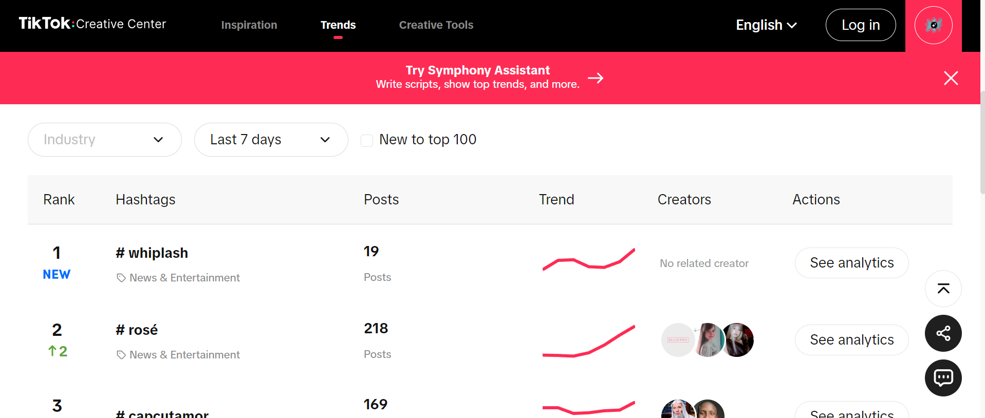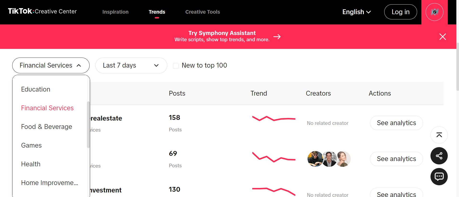 Các công ty có thể sử dụng trung tâm nhà sáng tạo tích hợp sẵn của TikTok để tìm các xu hướng phổ biến và các video phổ biến trên TikTok gần đây. Không chỉ có thể xem các thẻ phổ biến cho các video thuộc các danh mục khác nhau, mà còn có thể chọn thời gian nào phổ biến. Khi tạo video, các công ty có thể sử dụng công cụ này để tìm các thẻ phù hợp với nội dung video của họ và kết hợp các thẻ này với sản phẩm của họ để tìm các thẻ phù hợp với nội dung và có lưu lượng truy cập.