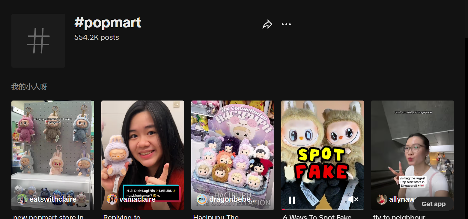Thẻ thương hiệu thường được các thương hiệu tạo ra để nâng cao nhận thức về thương hiệu. Các thương hiệu lớn có thể tạo thẻ riêng của họ bằng cách tung ra các thử thách hoặc hoạt động, từ đó tăng cường sự tương tác hiệu quả giữa thương hiệu và khách hàng. Ví dụ, thẻ #popmart của PopMart đã có 554,2k lượt xem trên TikTok.