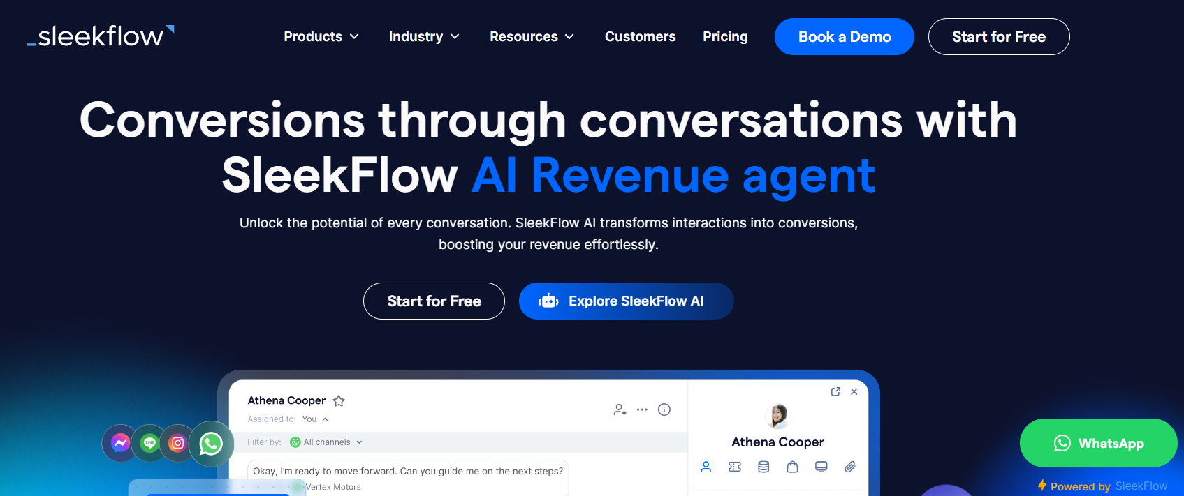 SleekFlow là một công cụ thương mại xã hội dành cho các thương hiệu ưu tiên các chiến dịch dựa trên nội dung, hỗ trợ WhatsApp, Instagram, Telegram, và nhiều hơn nữa.