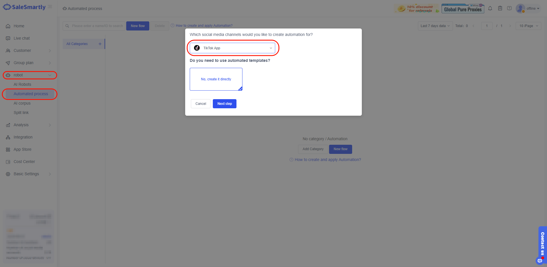- Tìm Robot - Quy trình tự động và chọn kênh ứng dụng TikTok.