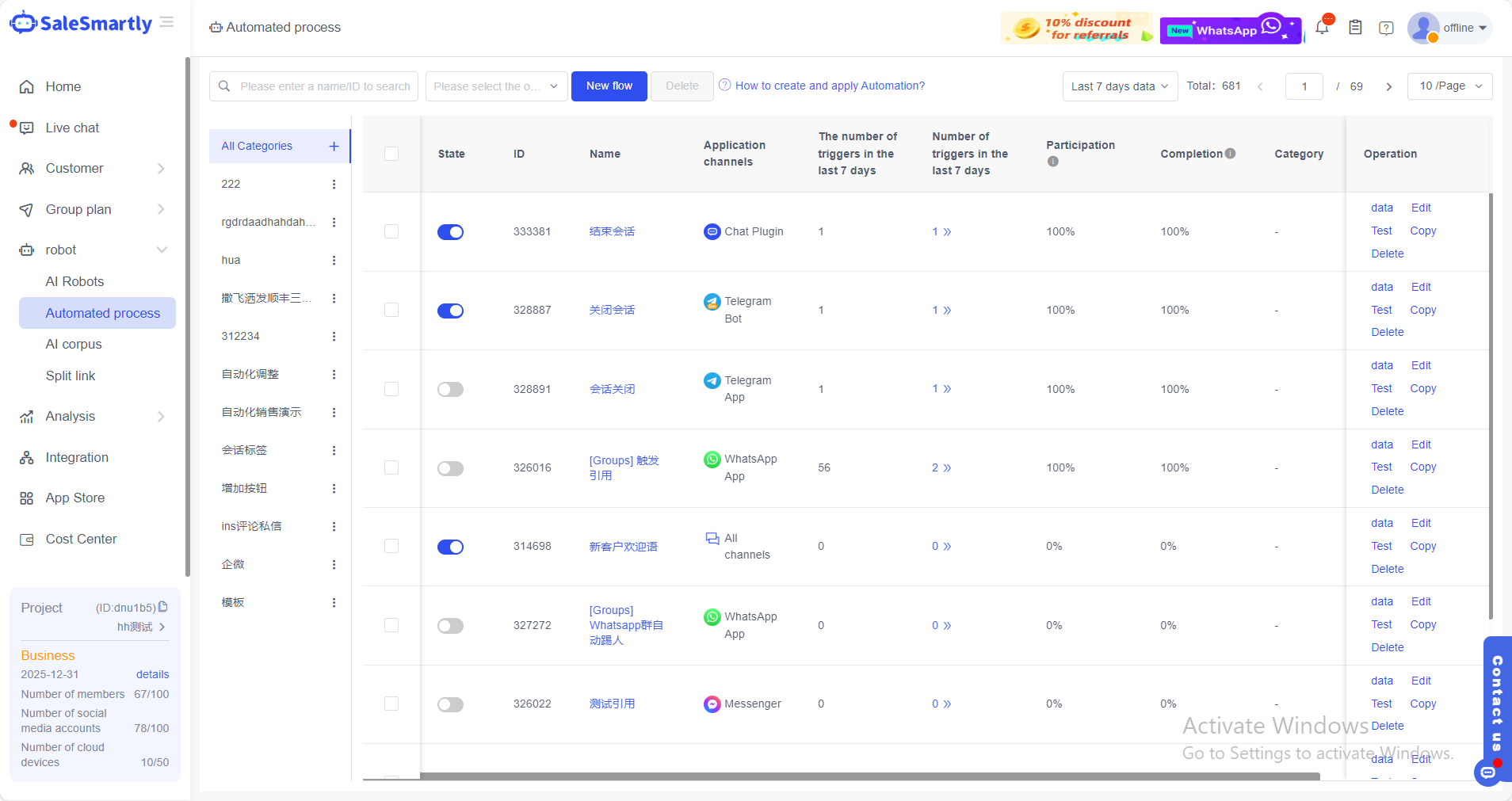 - Liên kết tài khoản của bạn với SaleSmartly, sau đó tìm Quy trình Tự động.